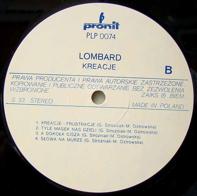 To jeszcze bardziej "kryzysowa" rzecz niż poprzedzająca ją płyta Anatomia. Trudno się oprzeć wrażeniu, że Grzegorz Stróżniak, główna siła muzyczna grupy, zbyt często powtarza się w swych kompozytorsko-aranżerskich poczynaniach. Zgoła machinalnie kontynuuje wątki z poprzedniego albumu (Ocalić serca, List nocą). Co gorsza proponuje coś w rodzaju rocka z night clubu, który może się kojarzyć z najbardziej komercyjnym amerykańskim graniem tamtych czasów (Kreacje-frustracje). Znać jego nastawienie na rzeczy taneczne, "uniwersalne" - obsesyjny rytm, czy gitarowa solówka nie zacierają tego wrażenia (Tyle masek nas dzieli). Na tym, niestety, nie koniec wpadek. Cukierkowe canto stróżniakowych Słów na murze czy duet wokalny Ostrowskiej i Stróżniaka z Ocalić serca kojarzą się z najzwyklejszym, festiwalowym piosenkarstwem. A to, co wstawia do Lombardu nowy muzyk, Henryk Baran, okazuje się muzyką jeszcze bardziej popową i banalną (To tylko moment). Zresztą takie - szkodzące artyzmowi grupy - działanie pod pod kątem hitowego rezultatu (czy ówczesnego polskiego rynku) dostrzec można w tekstach Ostrowskiej, coraz bardziej przypominających produkcę nudnych "zawodowców"! Właściwie daje do myślenia, że na tej płycie najbardziej przebojowa jest kompozycja ... najbardziej rockowego muzyka grupy, Piotra Zandera, Gino (numer z nerwem, z fajnym basowym riffem jako kanwą).